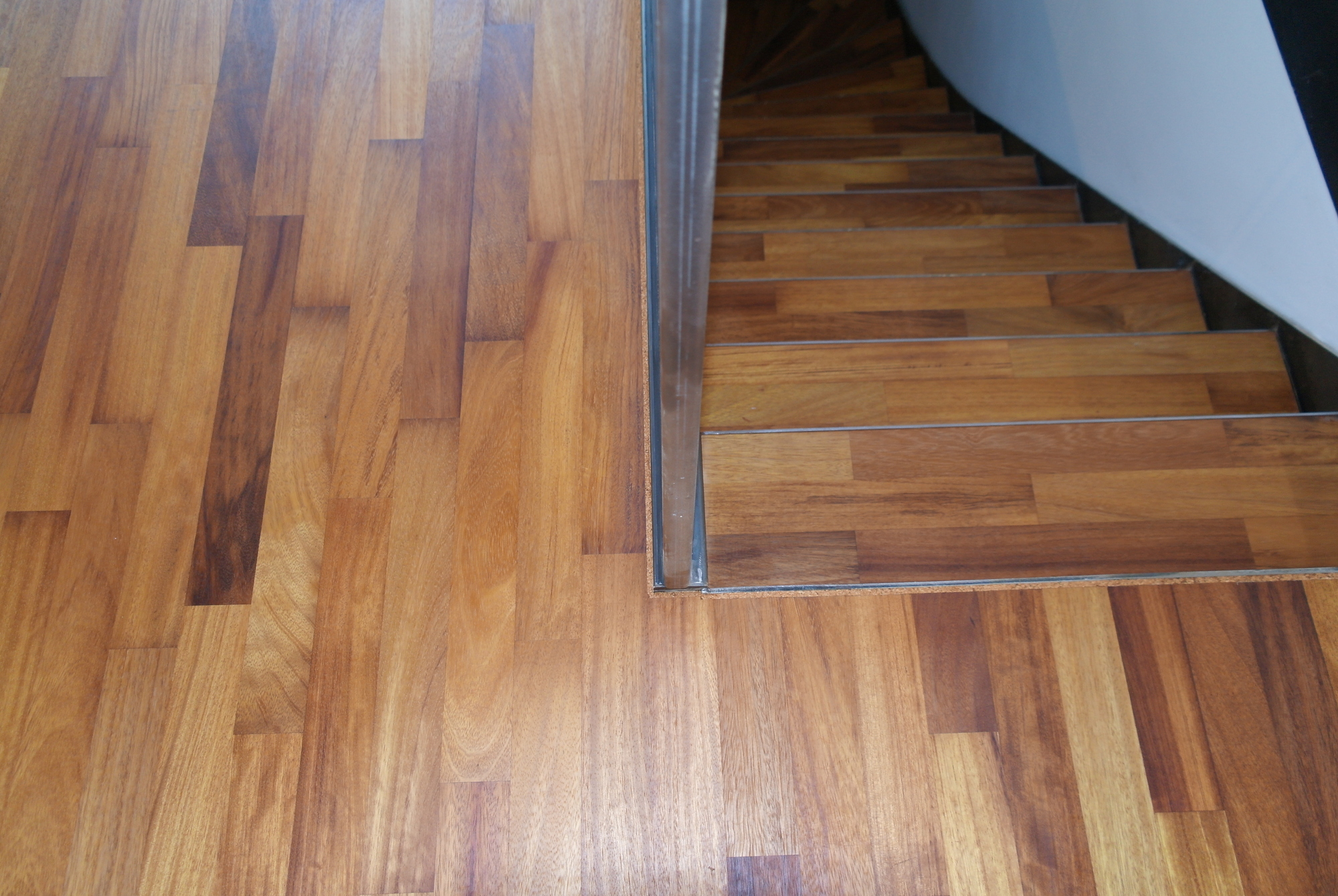 Linoleum-Treppen werden in der Regel auf einer Unterkonstruktion aus Holz oder Metall verlegt. Die Stufen und Wangen werden mit Holzschrauben oder Leim befestigt.